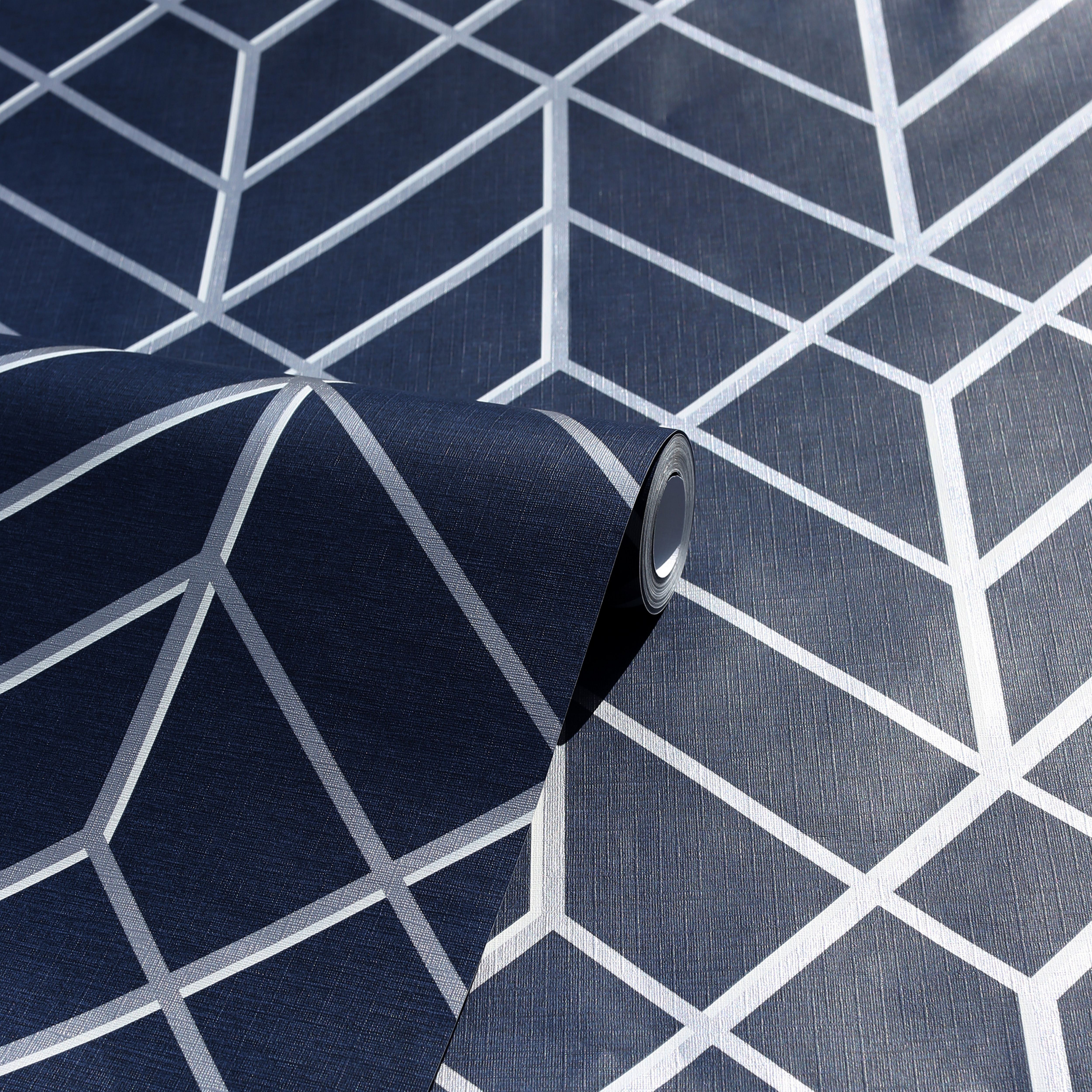 Refined and sophisticated, this navy wallpaper features a dazzling geometric pattern.